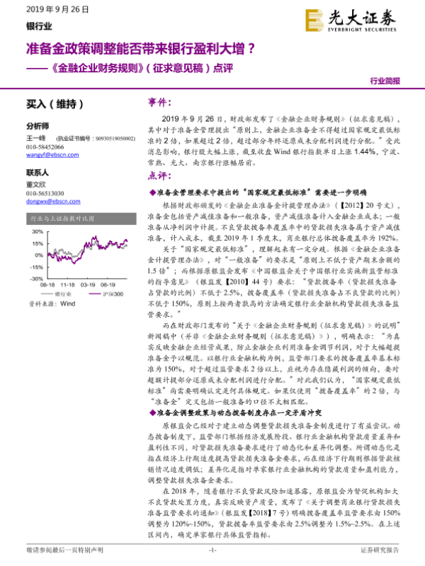 【光大证券】【20190926】金融企业财务规则(征求意见稿)点评:准备金政策调整能否带来银行盈利大增?-4页 证券期货研究报告