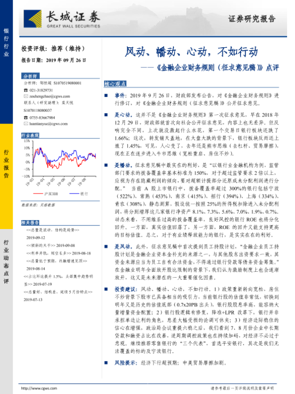 【长城证券】【20190926】金融企业财务规则(征求意见稿)点评:风动、幡动、心动,不如行动-2页 证券期货研究报告