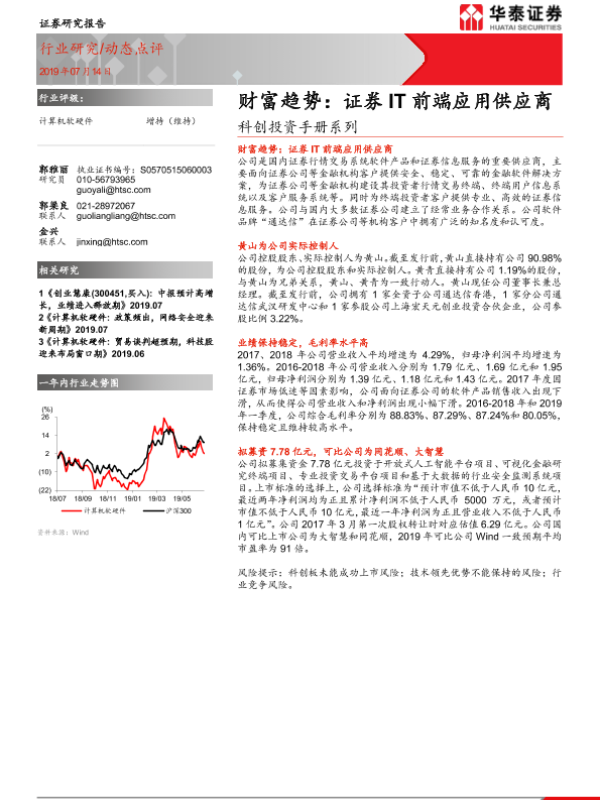 【华泰证券】【20190714】20190714-华泰证券-计算机软硬件动态点评:科创投资手册系列-财富趋势:证券IT前端应用供应商-8页 行业研究
