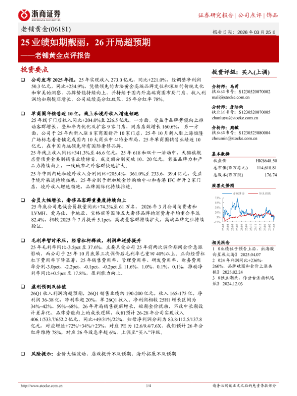 【浙商证券】【202603】25业绩如期靓丽,26开局超预期——老铺黄金点评报告-4页 证券期货研究报告