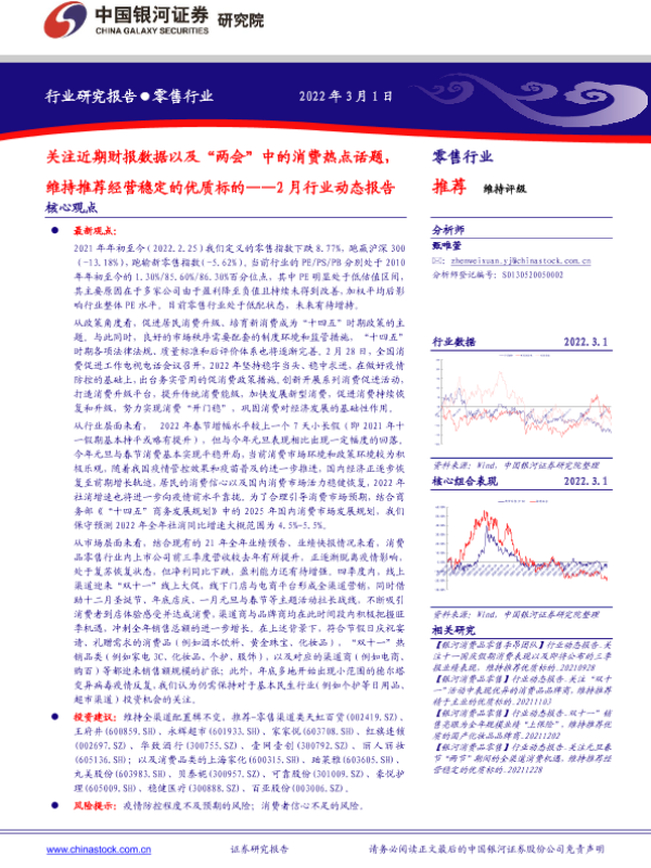 【银河证券】【20220301】零售行业2月行业动态报告:关注近期财报数据以及“两会”中的消费热点话题,维持推荐经营稳定的优质标的-27页 行业研究