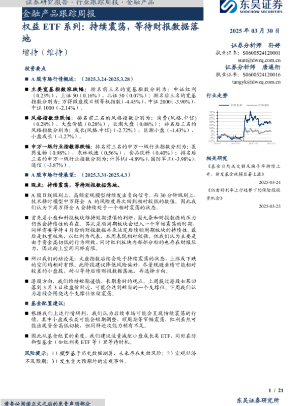 【东吴证券】【20250330】20250330-东吴证券-金融产品跟踪周报:权益ETF系列:持续震荡,等待财报数据落地-21页 行业研究
