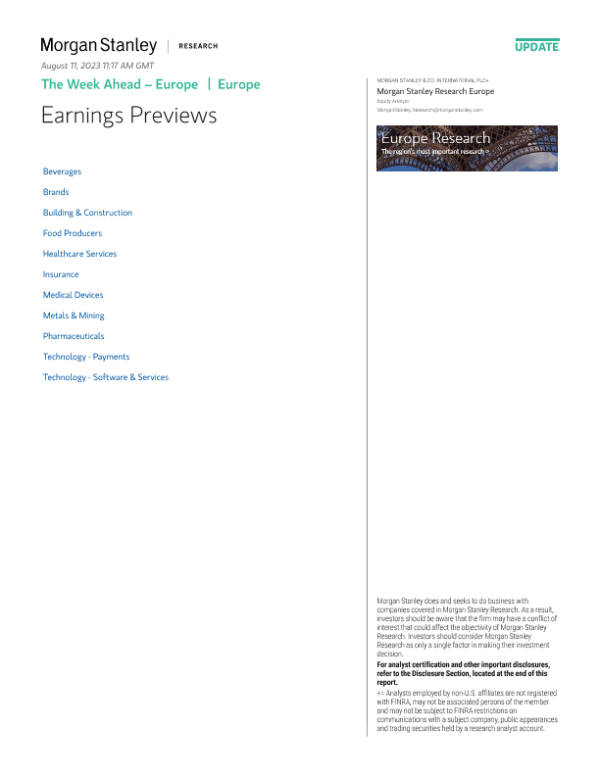 【Morgan Stanley】【20230814】The Week Ahead – Europe Earnings Previews-39页 行业研究