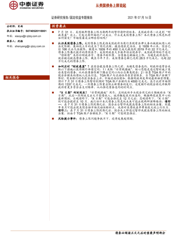 【中泰证券】【20210716】固定收益专题报告:从美国债务上限说起-11页 行业研究