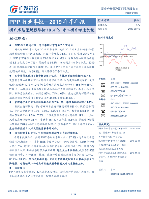 【广发证券】【20190816】PPP行业季报—2019年半年报:项目库总量规模维持18万亿,开工项目增速放缓-19页 行业研究