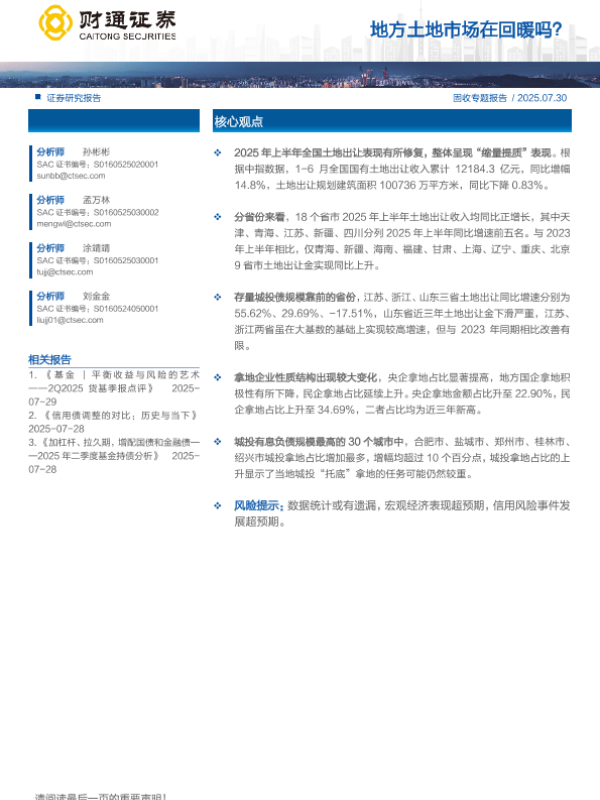 【财通证券】【202507】地方土地市场在回暖吗?-14页 证券期货研究报告