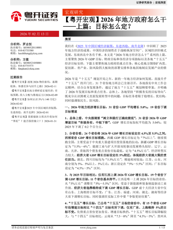 【粤开证券】【202602】2026年地方政府怎么干——上篇:目标怎么定?-13页 证券期货研究报告