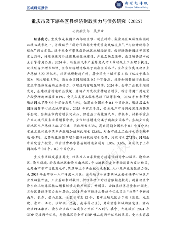 【公共融资部】【2025】重庆市及下辖各区县经济财政实力与债务研究(2025)-34页 行业研究