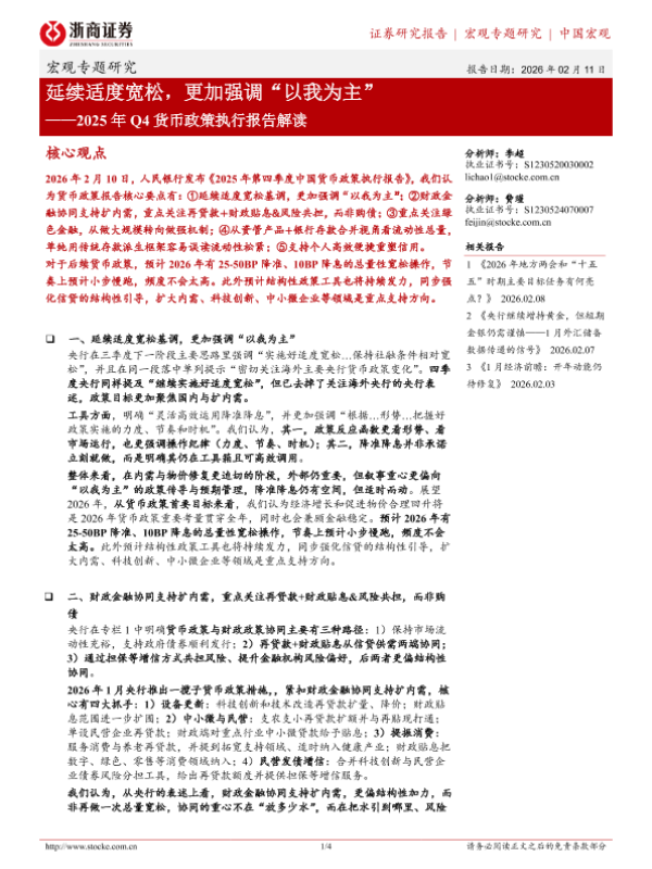 【浙商证券】【202602】延续适度宽松,更加强调“以我为主”——2025年 Q4货币政策执行报告解读-4页 证券期货研究报告