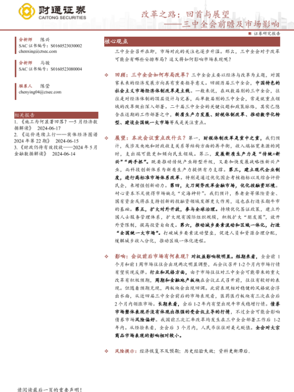 【财通证券】【20240619】三中全会前瞻及市场影响-改革之路:回首与展望-26页 宏观策略