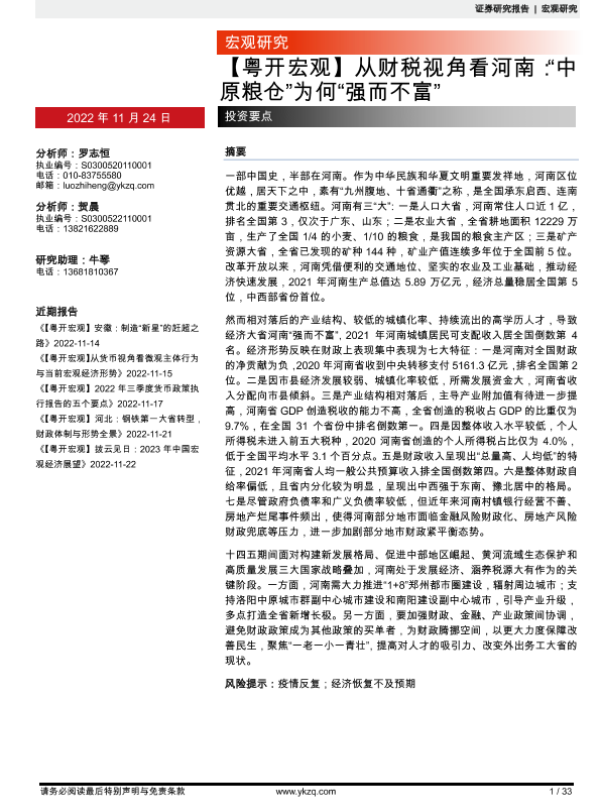 【粤开证券】【20221124】从财税视角看河南:“中原粮仓”为何“强而不富”-33页 行业研究