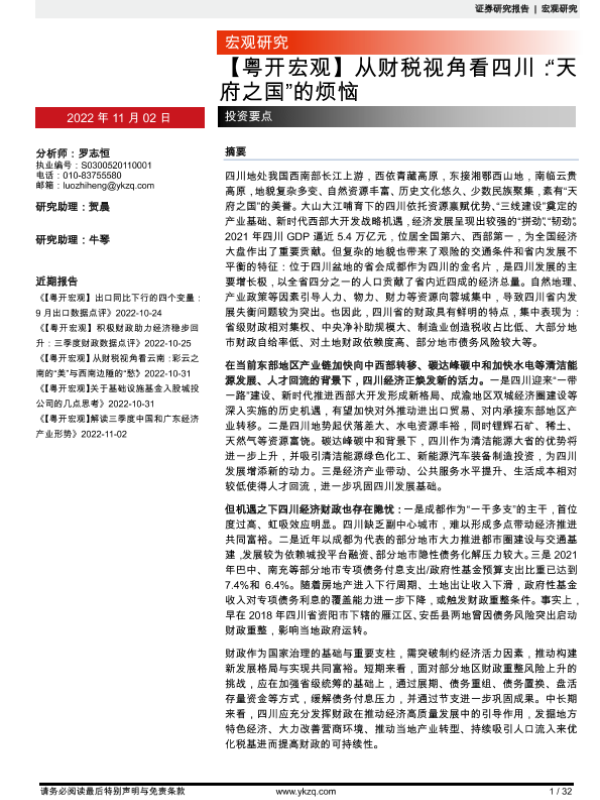 【粤开证券】【20221102】从财税视角看四川:“天府之国”的烦恼-32页 行业研究
