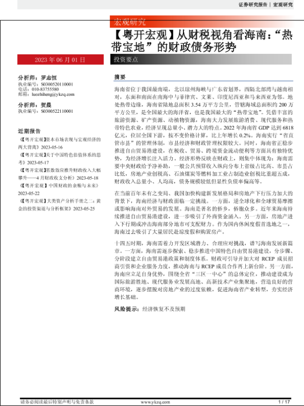 【粤开证券】【20230601】从财税视角看海南:“热带宝地”的财政债务形势-17页 行业研究