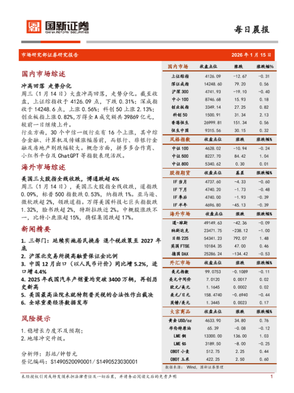 【国新证券】【202601】每日晨报-7页 证券期货研究报告