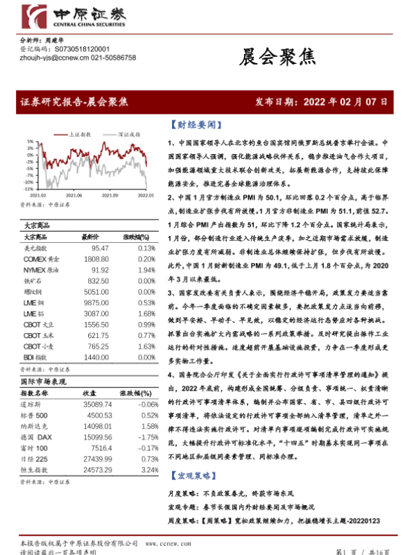 【中原证券】【20220207】20220207-中原证券-晨会聚焦-16页 行业研究