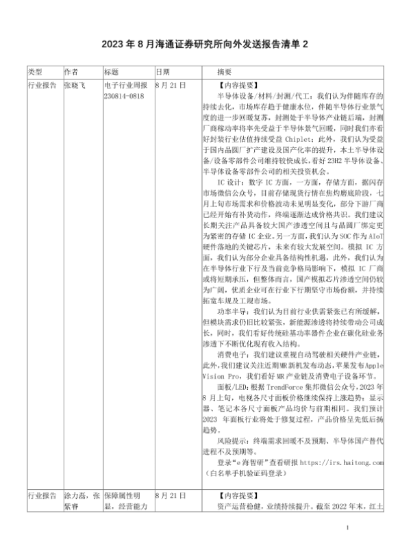 【海通证券】【20230904】2023年8月海通证券研究所向外发送报告清单2-280页 行业研究