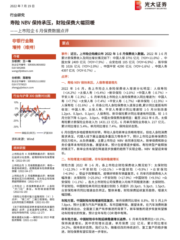 【光大证券】【20220719】上市险企6月保费数据点评-3页 行业研究