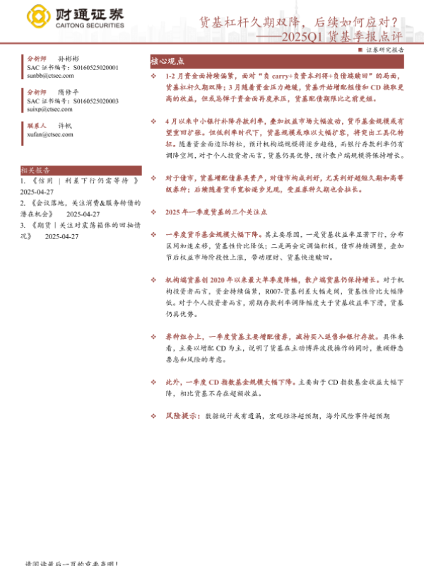 【财通证券】【20250428】2025Q1货基季报点评:货基杠杆久期双降,后续如何应对?-12页 证券期货研究报告