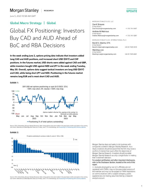 【Morgan Stanley】【20230605】Global FX Positioning Investors Buy CAD and AUD Ahead of BoC and RBA Decisions-6页 行业研究