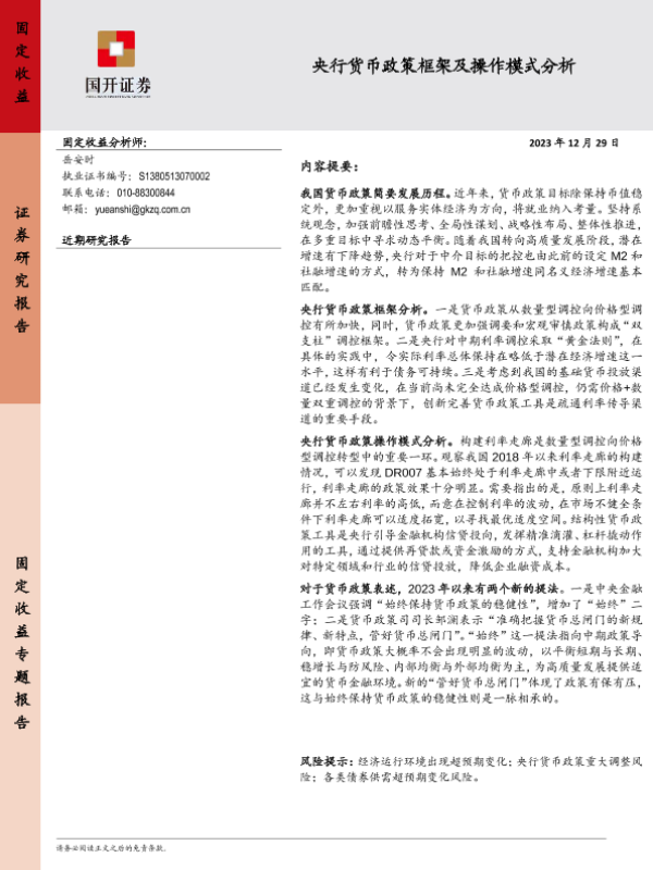 【国开证券】【20231229】央行货币政策框架及操作模式分析-20页 行业研究
