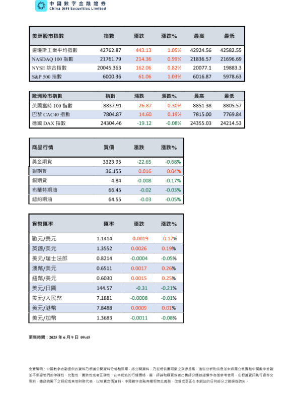 【南方汇发国际】【20250616】美洲及欧洲股市指数、商品行情与货币汇率报告-1页 证券期货研究报告