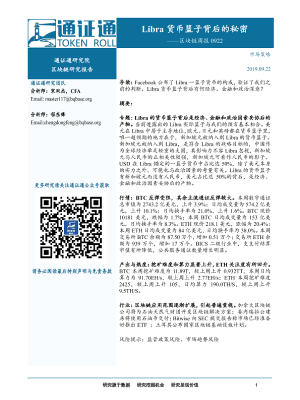 【通证通研究院】【20190922】区块链周报:Libra货币篮子背后的秘密-12页 行业研究