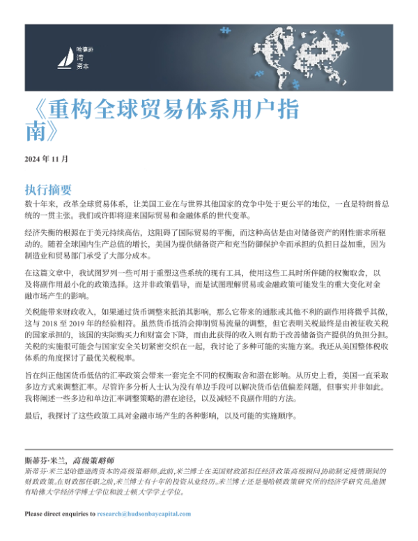 【哈德逊湾资本】【202411】重构全球贸易体系用户指南-41页 宏观策略