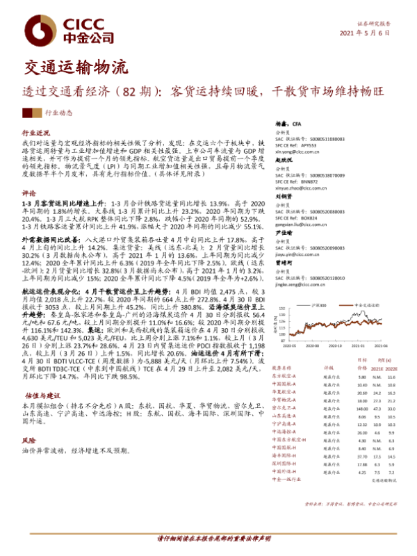 【中金公司】【20210506】透过交通看经济(82期):客货运持续回暖,干散货市场维持畅旺-27页 行业研究