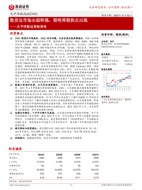 【浙商证券】【2025】小宗散货航运龙头,静待风起时-3页 证券期货研究报告