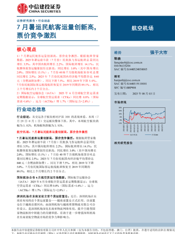 【中信建投证券】【202508】航空机场行业:7月暑运民航客运量创新高,票价竞争激烈-20页 证券期货研究报告