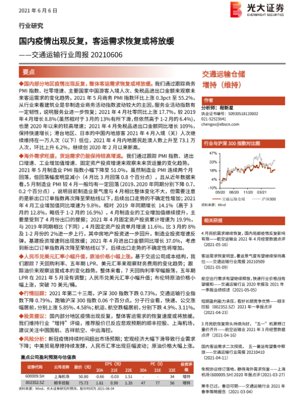 【光大证券】【20210606】国内疫情出现反复,客运需求恢复或将放缓-9页 行业研究