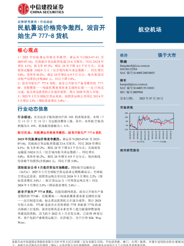 【中信建投证券】【20250720】航空机场行业动态-20页 证券期货研究报告