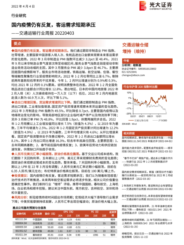 【光大证券】【20220404】国内疫情仍有反复,客运需求短期承压-9页 行业研究