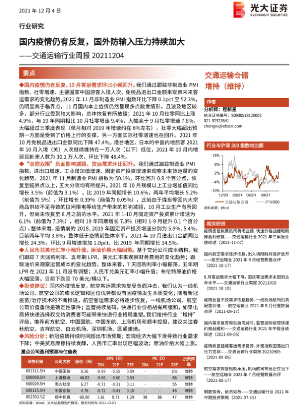 【光大证券】【20220604】国内疫情逐步缓解,客货运需求有望持续恢复-9页 行业研究