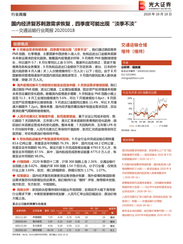 光大证券 交通运输仓储邮政 2020年 PDF 1.75 MB