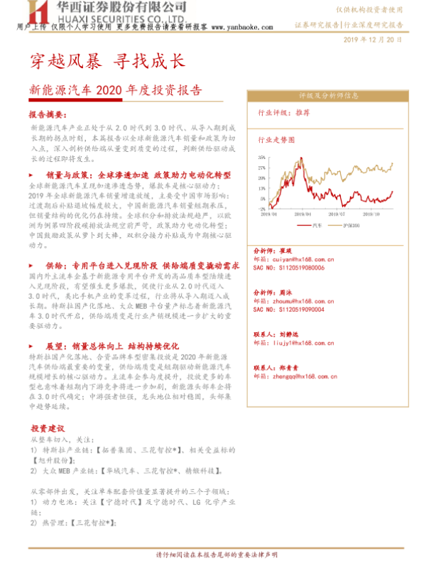 【华西证券】【20191220】新能源汽车行业2020年度投资报告:穿越风暴,寻找成长-50页 证券期货研究报告