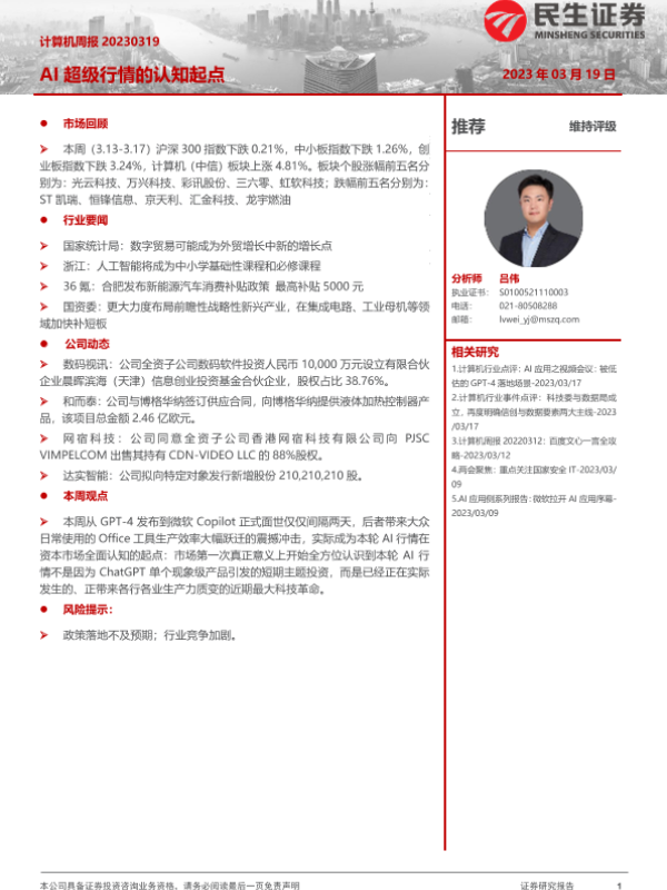 【民生证券】【20230319】计算机周报:AI超级行情的认知起点-39页 行业研究
