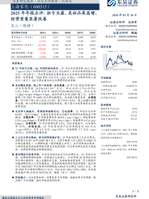 【东吴证券】【202603】2025年年报点评:扭亏为盈,美妆品类高增,经营质量显著改善-3页 证券期货研究报告