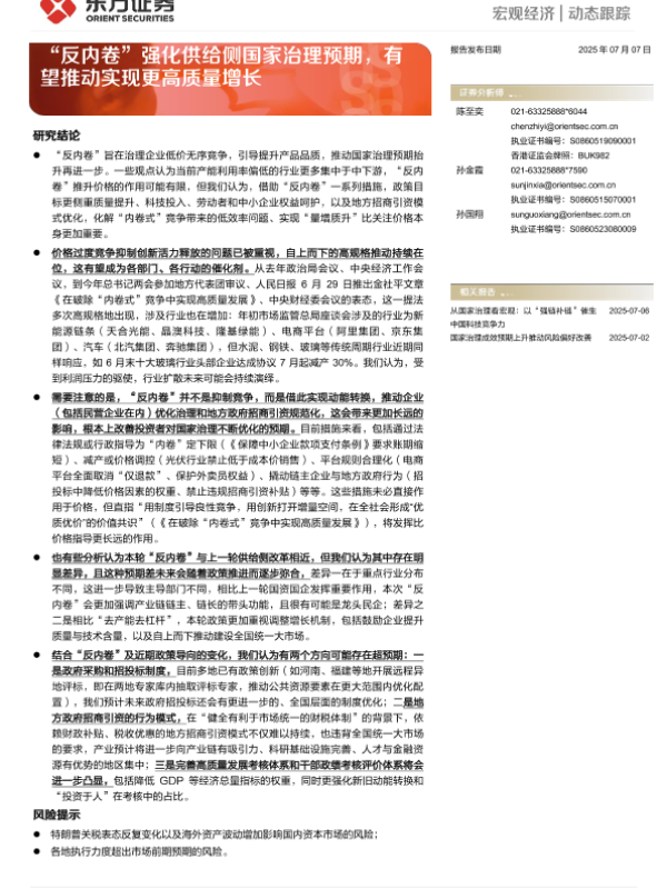 【东方证券】【20250707】反内卷_强化供给侧国家治理预期_有望推动实现更高质量增长-3页 宏观策略