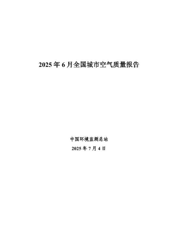 【中国环境监测总站】【202507】2025年6月全国城市空气质量报告-10页 市场调研
