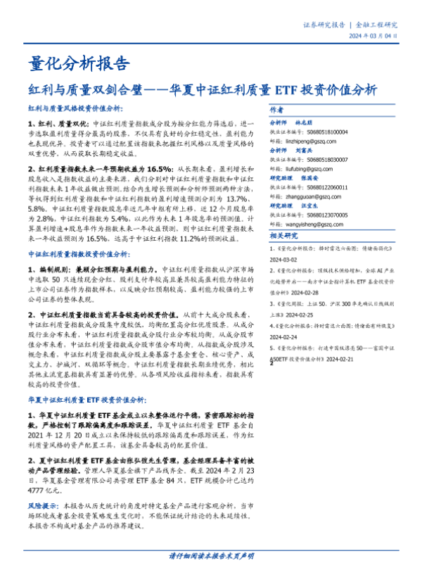 【国盛证券】【20240304】量化分析报告:华夏中证红利质量ETF投资价值分析-红利与质量双剑合璧-14页 行业研究