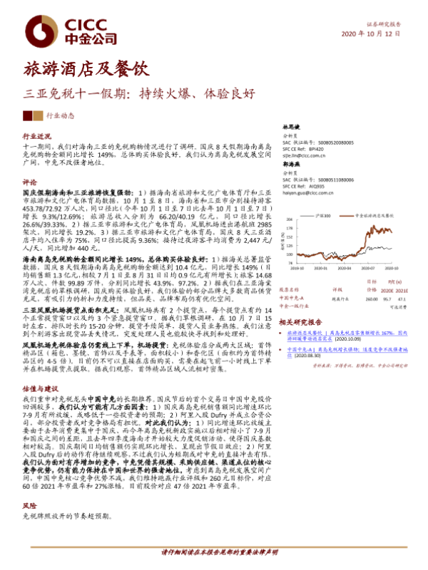 【中金公司】【20201012】三亚免税十一假期:持续火爆、体验良好-12页 行业研究