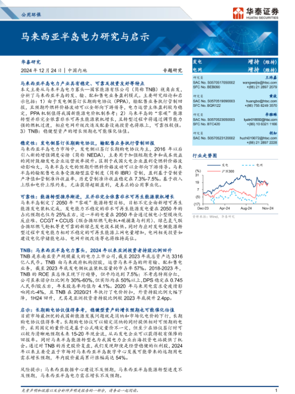【华泰证券】【20241224】公用环保专题研究:马来西亚半岛电力研究与启示-25页 行业研究