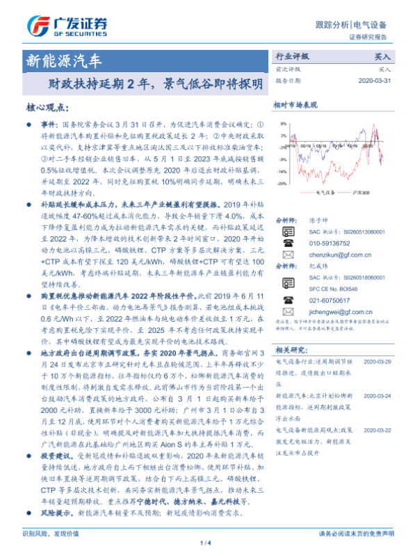 【广发证券】【20200331】新能源汽车跟踪分析:财政扶持延期2年,景气低谷即将探明-4页 行业研究