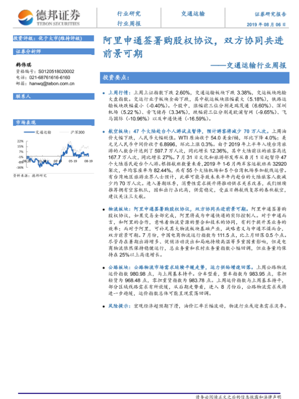 【德邦证券】【20190806】阿里申通签署购股权协议,双方协同共进前景可期-11页 行业研究