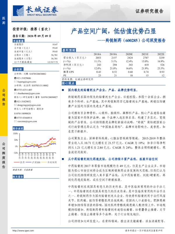【长城证券】【20200909】20200909-长城证券-羚锐制药-600285.SH-公司深度报告:产品空间广阔,低估值优势凸显-23页 行业研究