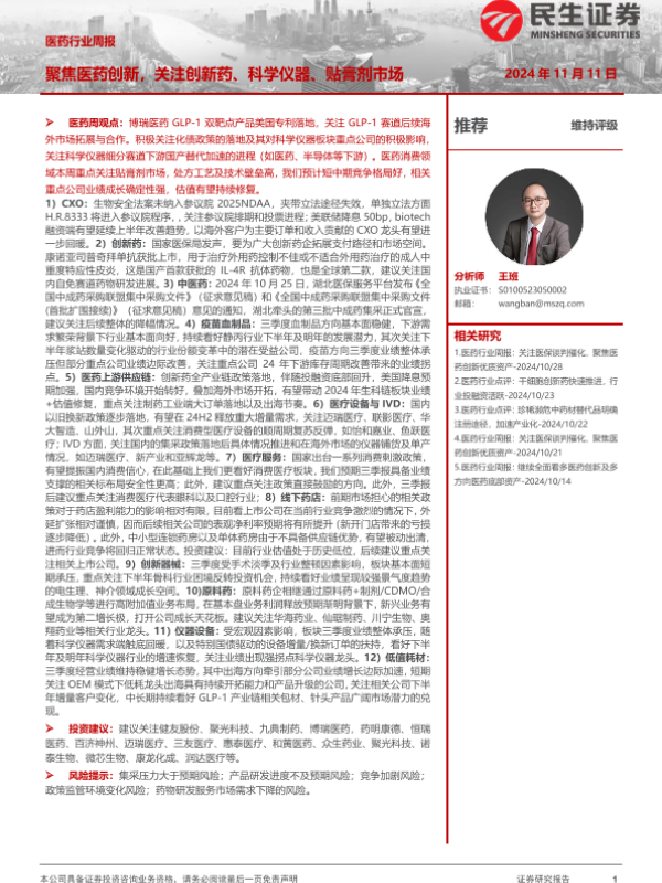 【民生证券】【20241111】医药行业周报:聚焦医药创新,关注创新药、科学仪器、贴膏剂市场-20页 行业研究