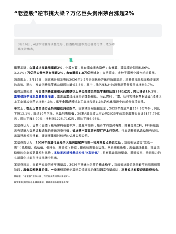 【华泰证券】【202603】“老登股”逆市挑大梁?万亿巨头贵州茅台涨超2%-2页 证券期货研究报告