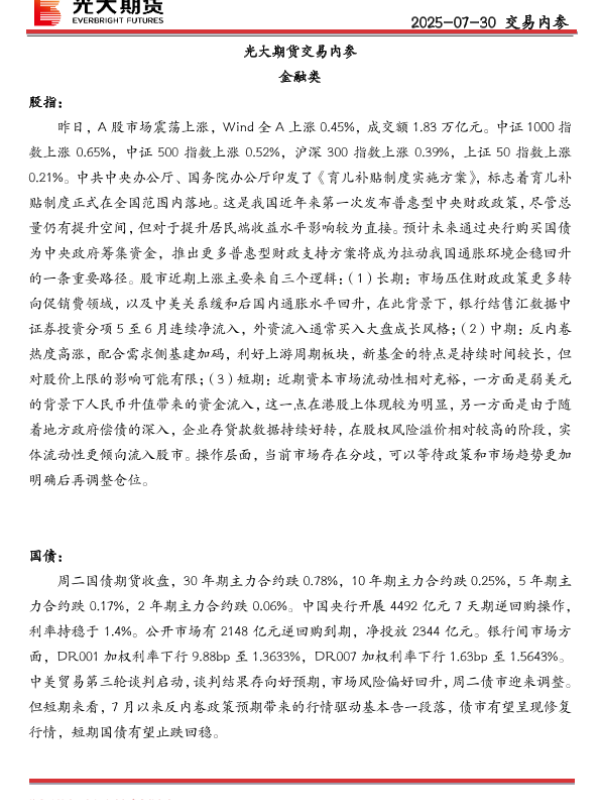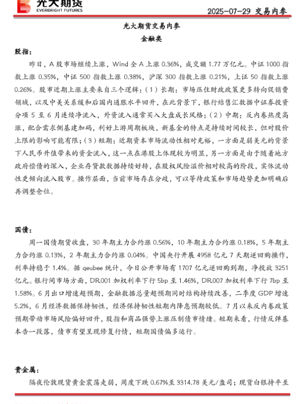 【光大期货】【20250730】20250730交易内参-15页 证券期货研究报告