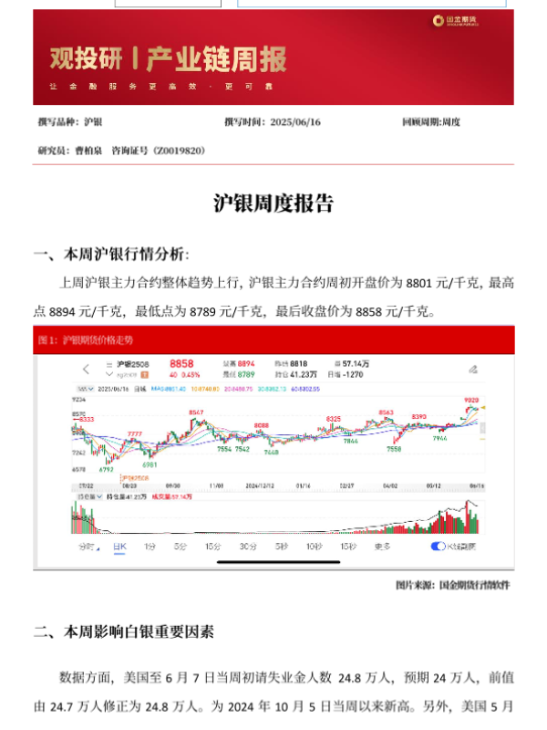 【国金期货】【20250616】沪银周度报告-2页 证券期货研究报告